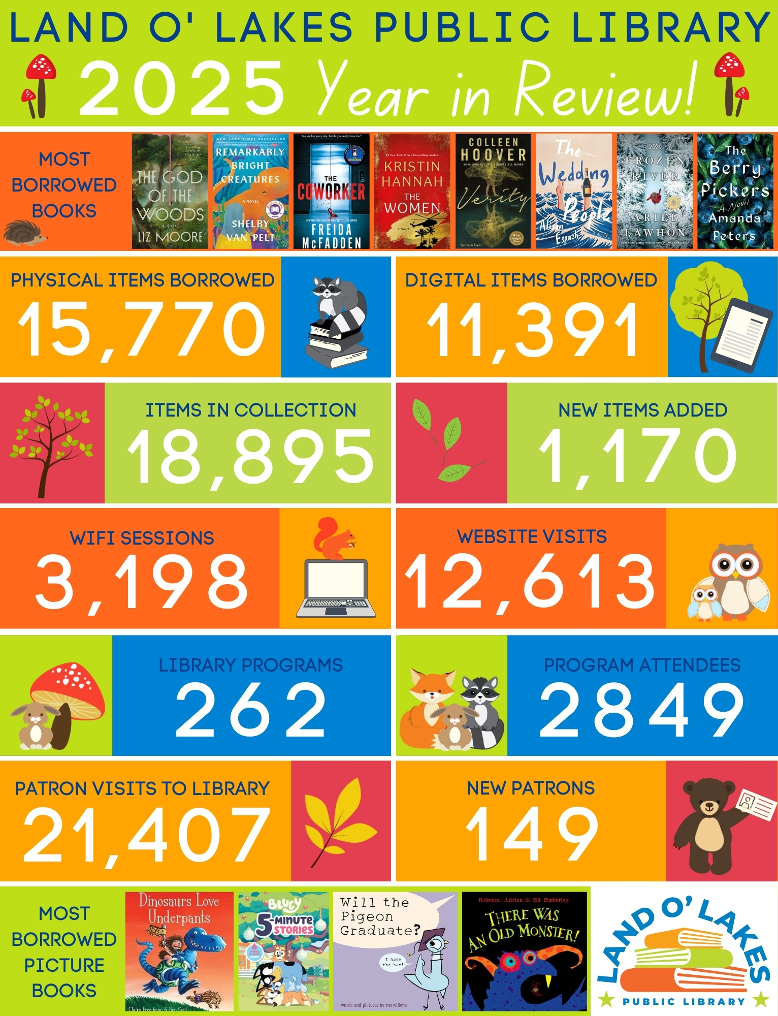 Library Library4242 Hwy B Land O’ Lakes, WI 54540 Phone: (715) 547-6006 Web: www.landolakeslibrary.org Public Library - 2024 Year in Review Public Library -2025 Year in Review